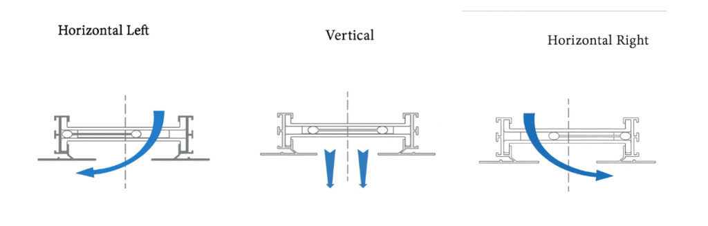 Air pattern can be controlled using pattern controllers, powder-coated black, if required.