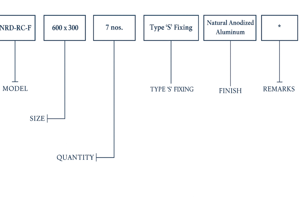 The blades are manufactured from aluminum sheet of 0.5 mm / 0.7 mm thickness in mill finish and are fixed to the main frame by means of galvanized steel rod of 2 mm / 3 mm dia.